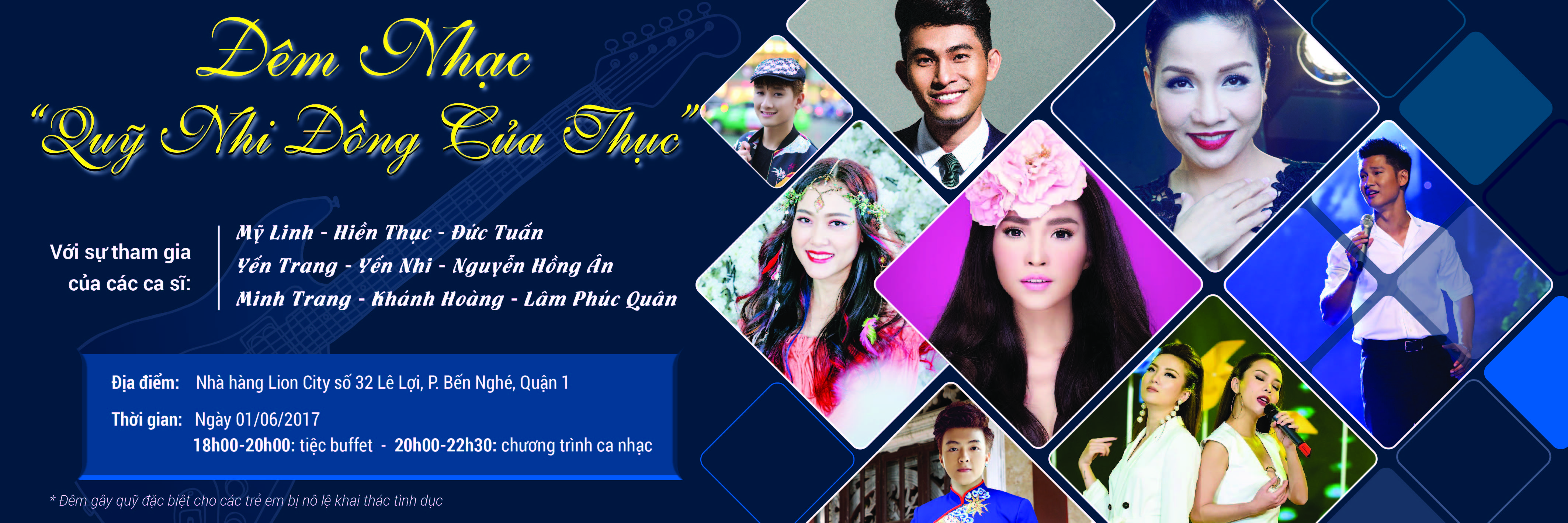 Tham gia đêm đêm nhacn này có nhiều ca sĩ nổi tiếng như: Mỹ Linh, Hiền Thục, Đức Tuấn, Nguyễn Hồng Ân, Yến Trang , Yến Nhi, Khánh Hoàng, Minh Trang, Lâm Phúc Quân. Đêm nhạc từ thiện sẽ diễn ra vào ngày Quốc tế thiếu nhi, tại TP. Hồ Chí Minh.