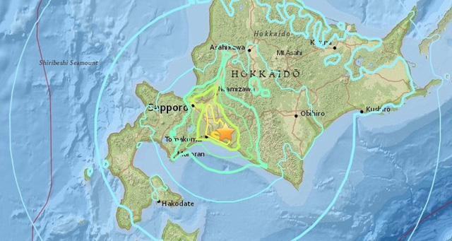 Trận động đất xảy ra trên đảo Hokkaido của Nhật Bản. Ảnh: USGS. |