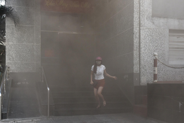 | Người dân hốt hoảng tìm cách chạy khỏi chung cư - Ảnh: VTV |