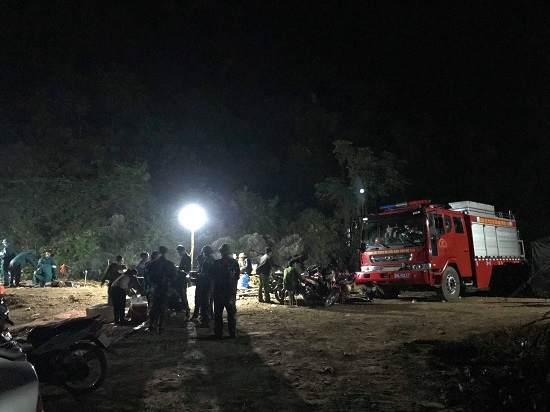 Đến rạng sáng 6/11, dù công việc tìm kiếm đã dừng lại nhưng người thân của các nạn nhân gặp nạn vẫn quyết ở lại khu vực gần cửa hang để hy vọng sớm được nhìn thấy 2 phu vàng. |