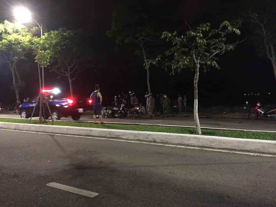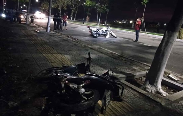 Tại hiện trường vụ 2 chiến sĩ cảnh sát Đà Nẵng hy sinh khi truy bắt cướp và đua xe, hai chiếc xe máy nằm chỏng gọng trên đường. Một người dân trú phường Thọ Quang cũng bị thương nặng.