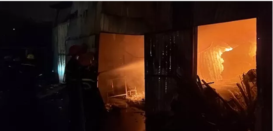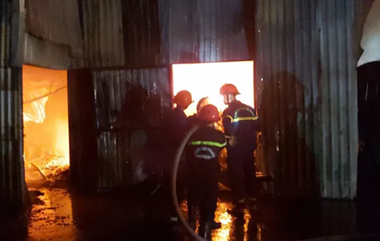 Do trong xưởng có nhiều vật liệu dễ cháy nên ngọn lửa bùng phát dữ dội. |