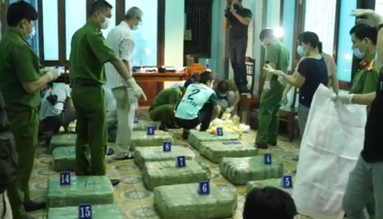 Công an tiến hành kiểm đếm hơn 3 tạ ma túy đá thu giữ. |