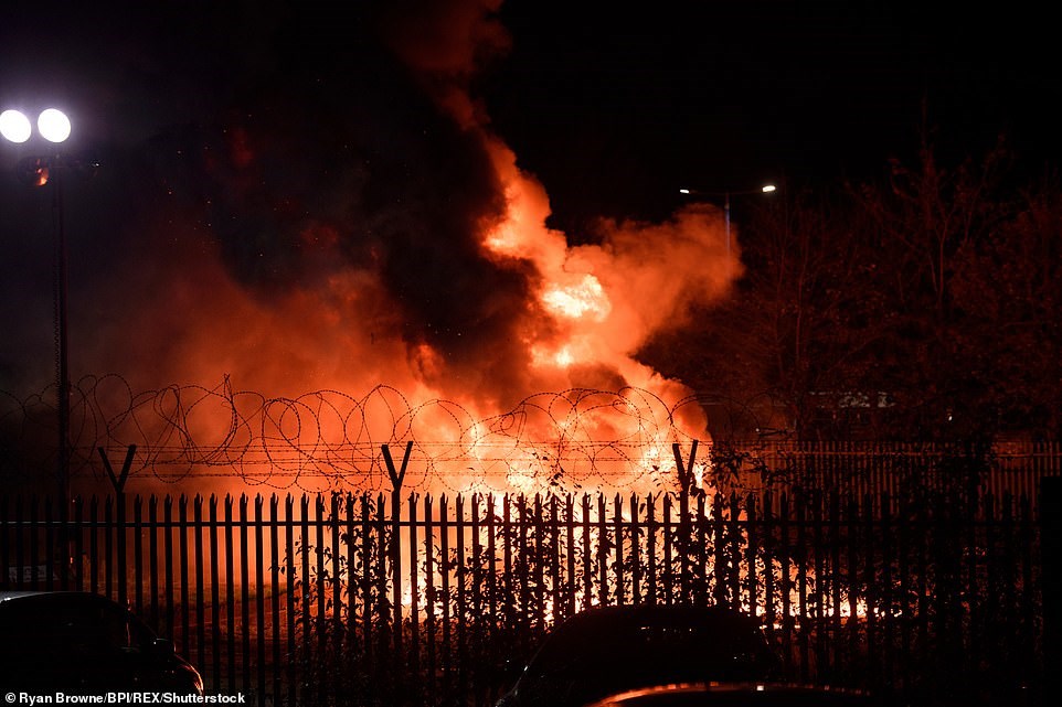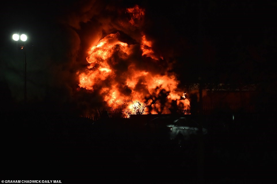 Chiếc trực thăng đã bốc cháy dữ dội sau khi rơi bên ngoài sân King Power.. Ảnh: DailyMail |