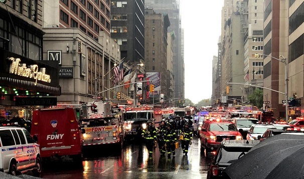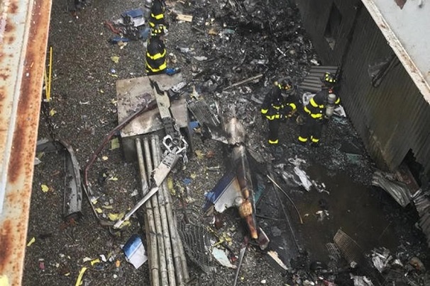 Còi báo động của hàng chục xe cứu hỏa vang lên khắp khu vực, giao thông bị ngưng trệ và các văn phòng ở khu vực nhộn nhịp nhất của thành phố phải sơ tán sau khi trực thăng lao vào nhà chọc trời tại New York.
