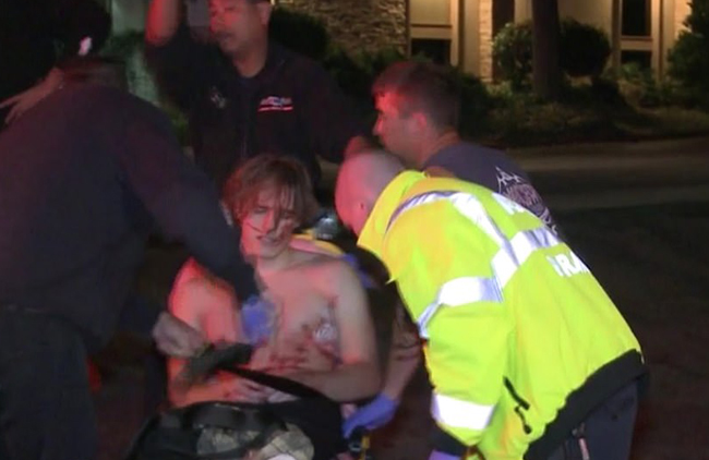 Một nạn nhân bị thương được đưa ra khỏi hiện trường vụ xả súng. Ảnh: RMG |