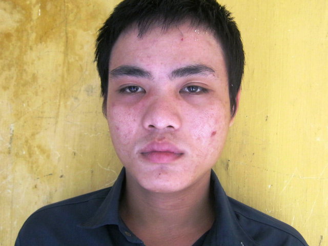 Nghi can Phạm Chí Phong tại cơ quan công an. Ảnh: Người lao động. |