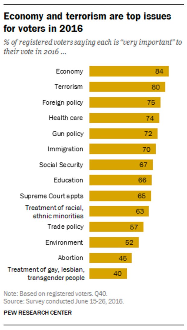 Các chủ đề được các cử tri Mỹ quan tâm hàng đầu trong năm 2016 là kinh tế và khủng bố - Ảnh: Guardian. |