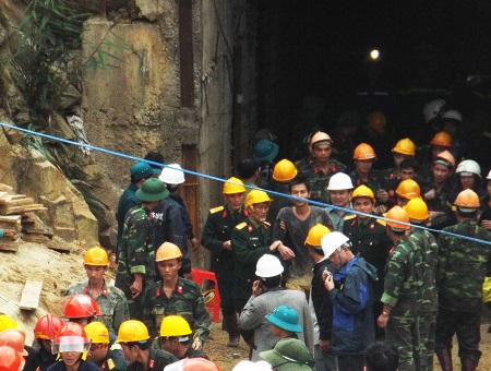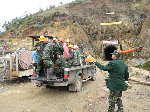 Tham gia mở đường hầm cứu nạn. (Ảnh: QĐND). |