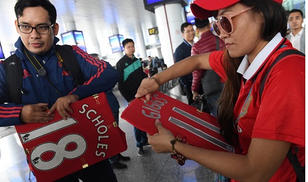 Để chào đón 2 ngôi sao bóng đá Ryan Giggs và Paul Scholes, những người hâm mộ tại Việt Nam đến Nội Bài từ hơn 11h để chờ đón 2 huyền thoại của đội bóng thành Manchester.