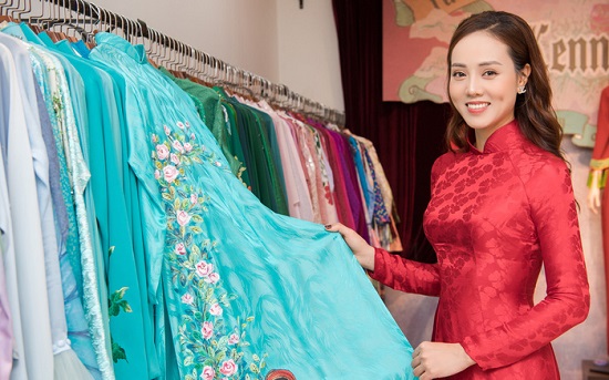 Ngọc Hà trong ngày đi thử áo dài cho lễ ăn hỏi. |