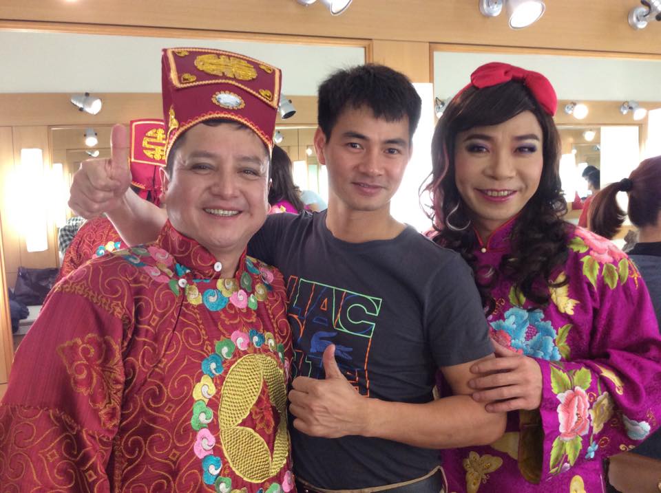 ![]() Nghệ sĩ Quang Thắng và Tự Long sau khi thay trang phục Táo vui vẻ ngồi "tự sướng" cùng đạo diễn Đỗ Thanh Hải chờ giờ tới lúc chương trình ghi hình. |