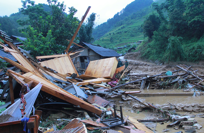 Nhiều nhà dân bị sập hoàn toàn. Ảnh: VnExpress |