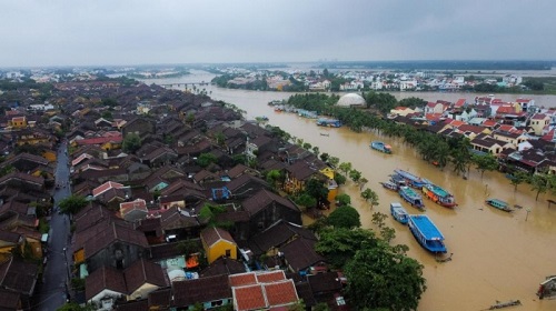 Nước lũ mênh mông tại phố cổ Hội An nhìn từ trên cao. Ảnh: Báo Giao Thông |