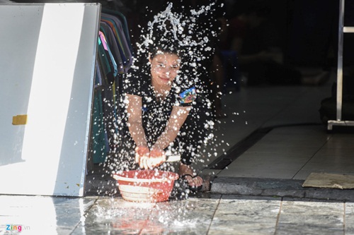 Người phụ nữ này liên tục hắt nước ra cửa để giảm bớt cái nóng. (Ảnh: Zing) |