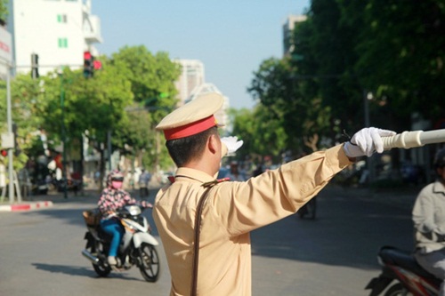 Trong khi mọi người nhanh chóng “trốn” cái nắng thì lực lượng CSGT lại luôn phải túc trực ngoài đường, đối mặt với cái nóng lên đến 40 độ C. (Ảnh: Lao động) |