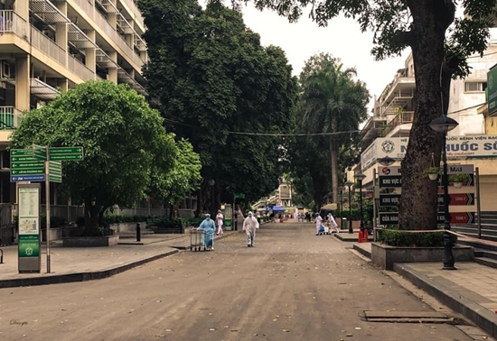 | Những ngày cách ly, bệnh viện vô cùng vắng vẻ, chỉ có những nhân viên y tế vất vả, tất bật hơn bao giờ hết. |