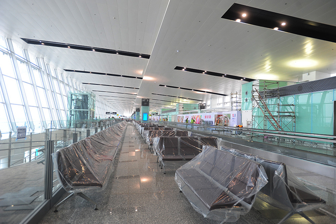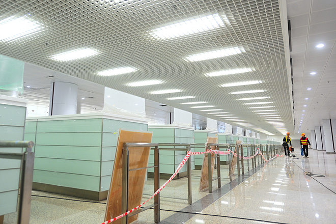 Công suất khai thác của nhà ga T2 lên tới 10-15 triệu hành khách. Nhà ga mới T2 gồm 4 tầng (không kể tầng hầm) với tổng diện tích gần 140.000m2. Trong đó, tầng một dành cho hành khách đến; tầng hai phục vụ luồng khách đi và đến; tầng ba dành cho hành khách đi; tầng bốn cho thuê nhượng quyền khai thác và sảnh công cộng. Riêng tầng hầm để vận chuyển hàng vào cách ly và hào kỹ thuật (Ảnh Vnexpress). |