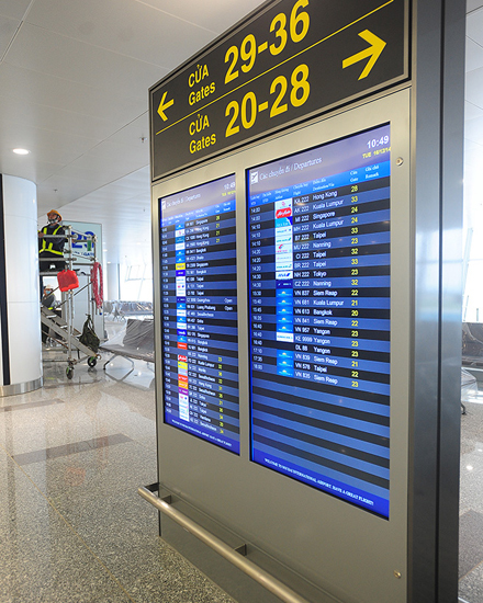 283 màn hình hiển thị thông tin chuyến bay đặt tại tất cả các vị trí như sảnh công cộng, quầy check-in, phòng chờ, cửa ra tàu bay, băng trả hành lý. Hệ thống Internet không dây đáp ứng hơn 32.000 người sử dụng cùng lúc. |