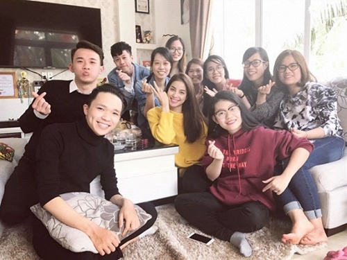 Phạm Hương khoe ảnh chụp cùng bạn bè tại nhà riêng ở Hải Phòng. Người đẹp tươi cười cùng bạn bè cho thấy một hình ảnh Phạm Hương xì tin đúng tuổi 9x.