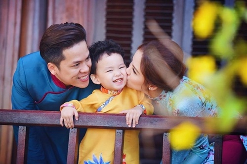 Khoảnh khắc gia đình nhỏ của Hoa hậu Diễm Hương trong trong phục áo dài truyền thống du xuân khiến nhiều người mừng cho hạnh phúc viên mãn của cô.