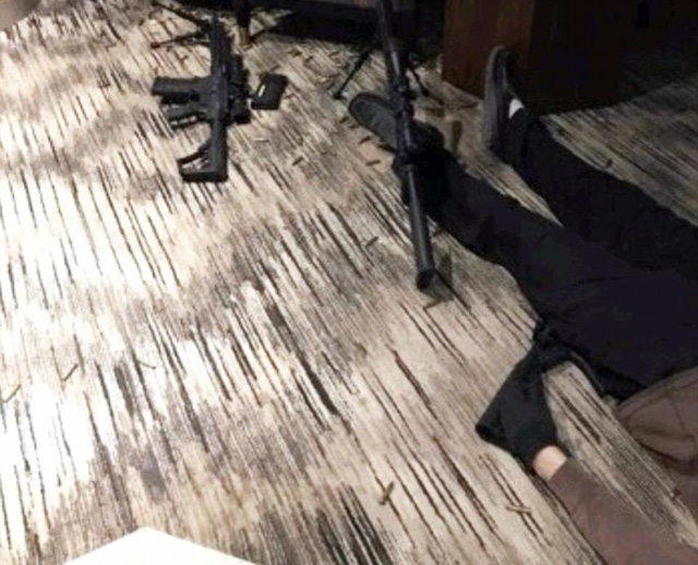 Hình ảnh khác cho thấy nhiều khẩu súng nằm rải rác trên sàn của căn phòng 32135 ở tầng 32 của khách sạn Mandalay Bay.
