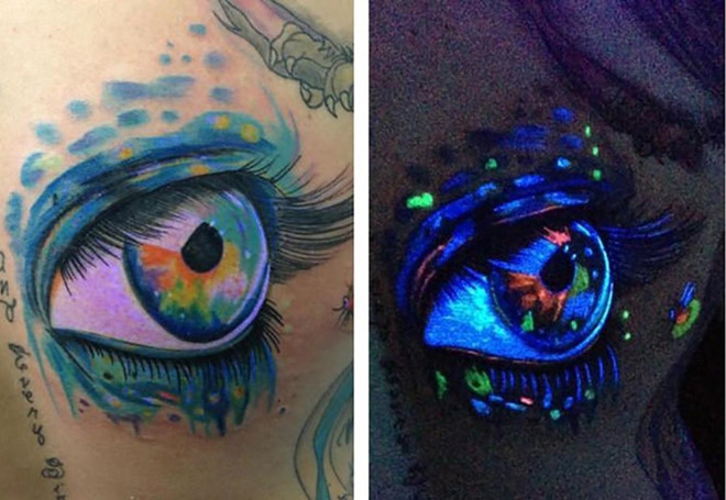 Xuất hiện các hình xăm này gần như không thể nhìn thấy bằng mắt thường, nhưng lại trở nên rực rỡ khi được đặt dưới ánh sáng của tia UV (tia cực tím).