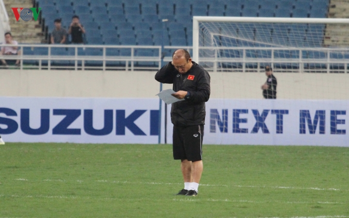 Trước Vòng loại U23 châu Á 2020 của U23 Việt Nam sẽ diễn ra vào tối 22/3, HLV Park Hang-seo khá trầm ngâm trong buổi tập làm quen sân Mỹ Đình.