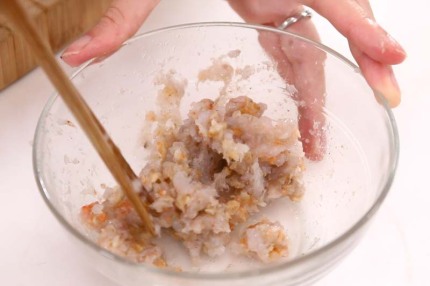 - Bước 2: Với tôm tươi, sau khi làm sạch, các bạn xay nhuyễn hoặc băm nhỏ cùng phần tôm khô.