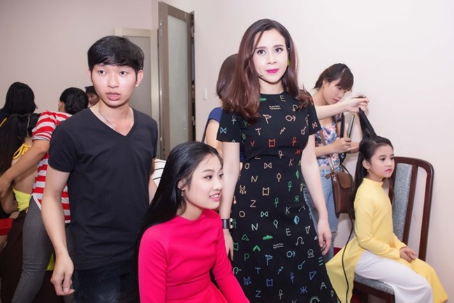 Không chỉ vậy, trong hậu trường cô còn nhí nhảnh làm tóc cho chồng khiến nhiều người thích thú. Thậm chỉ, sau khi được vợ làm tóc, Hồ Hoài Anh còn còn cố tình trả công cho Lưu Hương Giang bằng một nụ hôn khiến cô “ngượng đỏ mặt”. |