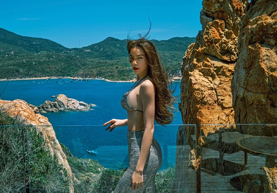 Ở góc ảnh nghiêng, nữ ca sĩ khoe khéo vòng một sexy, căng đầy. Nhiều khán giả dành lời khen cho vóc dáng gợi cảm của "bà mẹ ba con" chỉ sau vài tháng sinh nở. Diện chiếc quần dài kín đáo nhưng bà xã Kim Lý vẫn khoe được vòng 3 nảy nở, kết hợp cùng chiếc áo bikini nhỏ xíu đã phô diễn đôi "gò bồng đảo" căng đầy hút mắt. Bên cạnh đó, vòng 2 phẳng lì của Hồ Ngọc Hà cũng là thứ mà tất cả phụ nữ sau khi sinh nở đều ao ước.