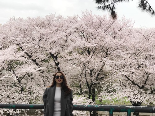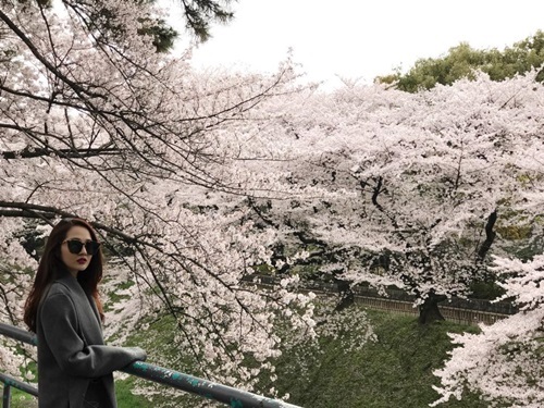Mới đây, Bảo Anh cũng cập nhật hình ảnh của mình tại Nhật Bản bên khung cảnh lãng mạn với hoa anh đào.