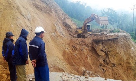 Ông Nguyễn Hoàng Mộng, Phó chi cục Quản lý đường bộ III.4 cho biết, tuyến Trường Sơn Đông xảy ra 28 điểm sạt lở ta luy dương và âm, gây ách tắc giao thông. Sau khi sự cố xảy ra, đơn vị đã phối hợp với 4 các bên liên quan huy động hơn 12 máy móc, xe múc, ủi đất… khắc phục sự cố. Tuy nhiên do khối lượng đất đá sạt lở và sụt lún lớn, việc khắc phục gặp nhiều khó khăn.