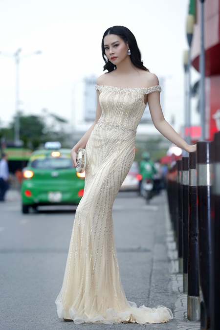 Càng ngày càng được khen ngợi là xinh đẹp hơn, Hoa hậu Biển gây thu hút khi diện một chiếc đầm màu nude ngọt ngào khoe vai trần quyến rũ, mềm mại.