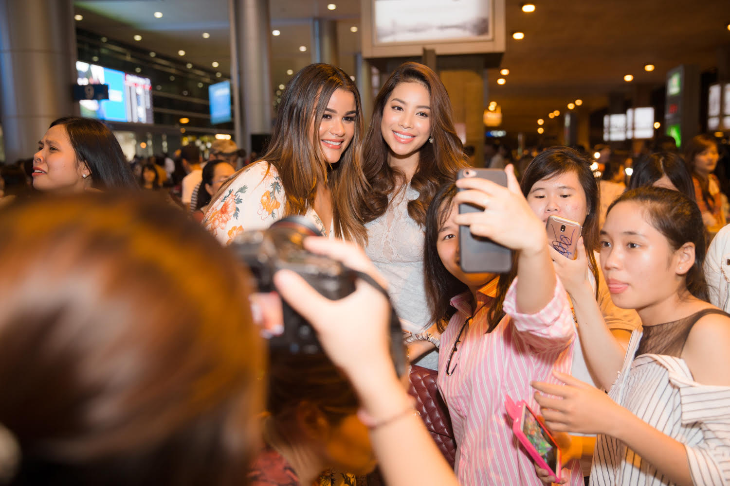 Mặc dù tối muộn Clarissa mới đáp chuyến bay nhưng Phạm Hương đã có mặt ở sân bay từ lúc 21 giờ 20 phút, sau đó vào tận bên trong để hỗ trợ bạn mình làm thủ tục nhập cảnh. Cô tặng hoa cho Clarissa và cả hai cùng nhau trò chuyện thân mật, liên tục hỏi thăm sức khỏe nhau. Đương kim Hoa hậu Hoàn vũ Việt Nam nắm tay thân thiết với đương kim Nữ hoàng Sắc đẹp Mỹ La Tinh.