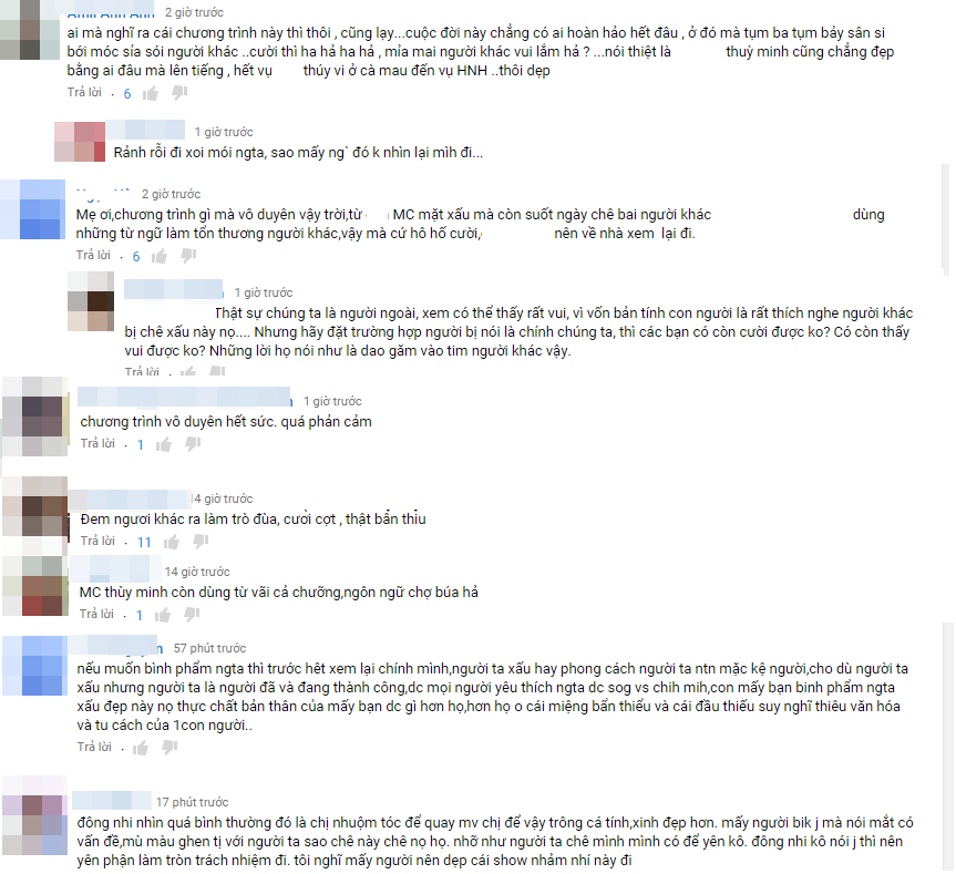 Đa số đều tán thành những chia sẻ của Hoa hậu Việt Nam 2012 và cho rằng chương trình mang ý kiến chủ quan và quy chụp của người người dẫn dắt. MC quá vô duyên lấy khuyết điểm của người khác ra “soi”, cười cợt làm niềm vui cho mình.