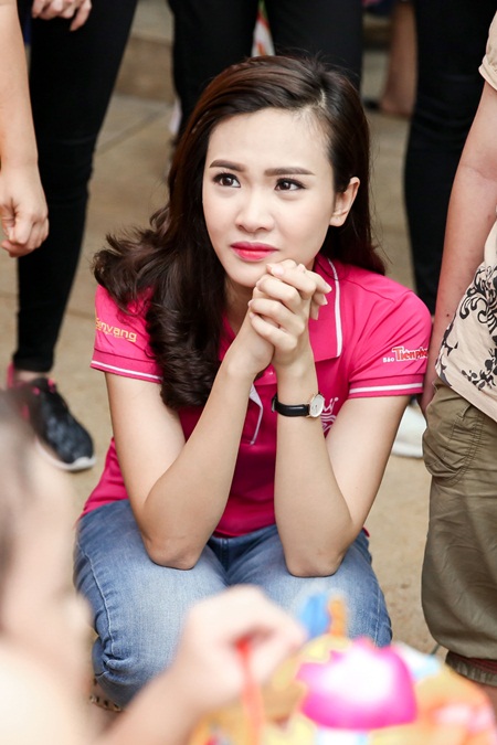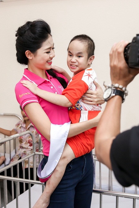 Các người đẹp đã tới thăm và hỏi han các cô điều dưỡng về tình hình sức khoẻ đời sống của các em. Hoa hậu Đỗ Mỹ Linh đã cảm động rưng rưng nước mắt khi được lắng nghe những hoàn cảnh đầy khó khăn của các bé tại khu chăm sóc đặc biệt này.