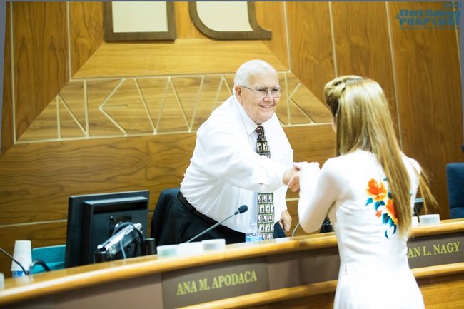 | Thị Trưởng Newark - ông Alan Nagy đã vinh danh Jennifer Chung về những gì cô đã đạt được. |