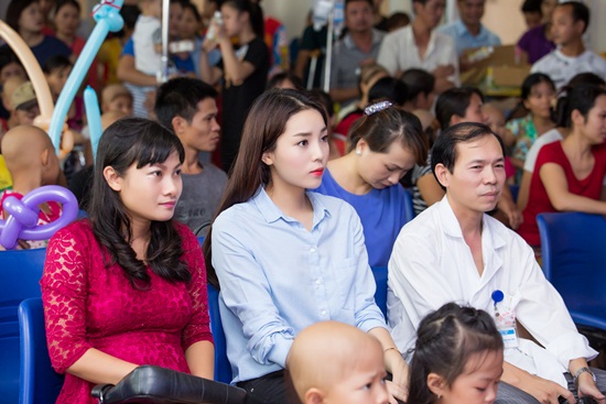 Cô cũng động viên và chia sẻ với hoàn cảnh của những em nhỏ nơi đây để giúp các em có niềm tin và nghị lực vượt qua căn bệnh quái ác đang mang trong mình.