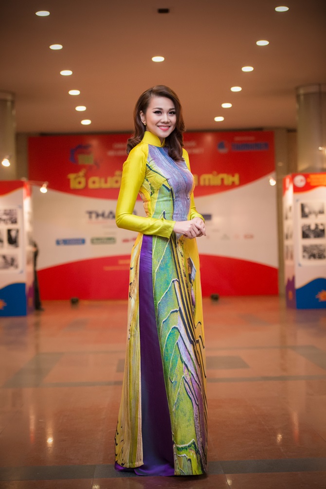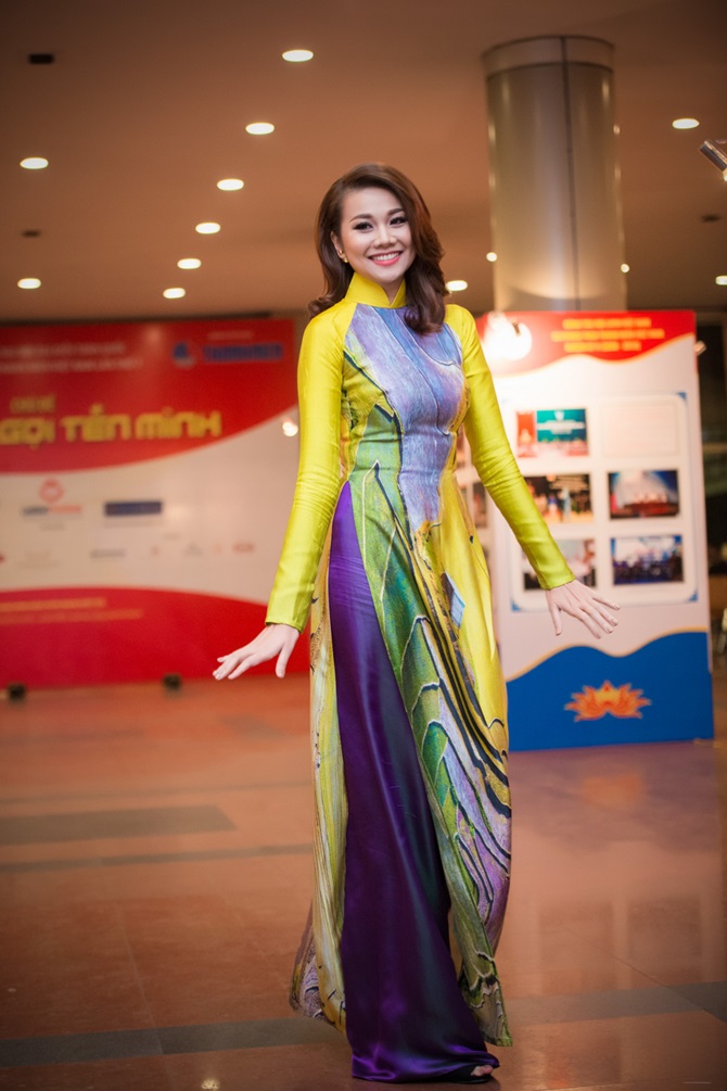 Hoa hậu Kỳ Duyên tham gia chương trình "Khát vọng trẻ" trong vai trò khách mời và cùng các người đẹp khác trình diễn áo dài trên sân khấu. |