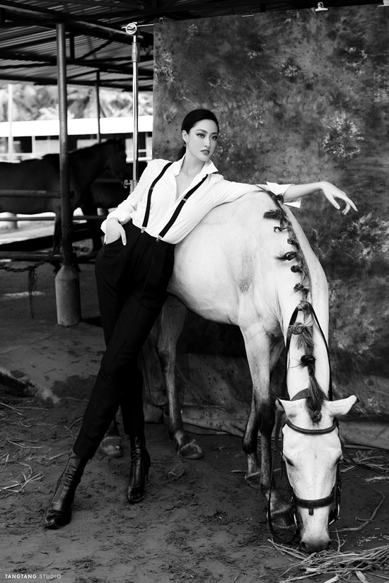 Nàng hậu đã quá quen thuộc với những tà áo dài hay trang phục dạ hội lộng lẫy mỗi khi xuất hiện, cho nên việc tung ra bộ ảnh menswear lần này đều khiến khán giả trầm trồ. |