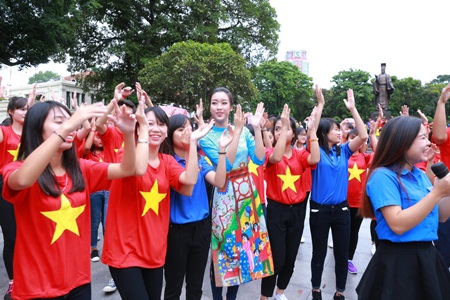 (ĐSPL) - Sáng hôm qua (30/10), Hoa hậu Việt Nam 2010 Ngọc Hân, Hoa hậu Việt Nam 2016 Mỹ Linh, Á hậu Thanh Tú, "Người đẹp nhân ái" Thuỷ Tiên, "Người đẹp truyền thông" Ngọc Vân và hơn 3.000 học sinh, sinh viên trên địa bàn Hà Nội đã tham gia nhiều tiết mục nhảy dân vũ, flashmob đặc sắc và sôi động trong chương trình "Nhảy!Vì Việt Nam khỏe mạnh hơn", hưởng ứng chiến dịch “Nhảy! Vì sự tử tế” nhân ngày ‘Thế giới tử tế’ 13/11 do Đoàn Thanh niên Cơ quan T.Ư Đoàn, CLB Liên kết Trẻ T.Ư Đoàn phối hợp với nhóm dự án Dance! For kindness Việt Nam tổ chức.