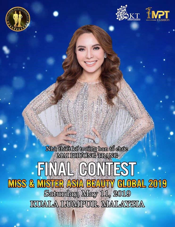 Theo tìm hiểu của PV, cuộc thi “Hoa hậu Nam vương sắc đẹp toàn cầu Châu Á 2019” do Nhà thiết kế Mai Phương Trang đứng ra tổ chức. Ngày 11/5/2019 tới đây, sẽ diễn ra đêm chung kết tại tòa tháp đôi Patronas - Trung tâm thành phố Kuala Lumpur – Malaysia.