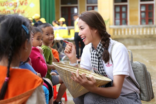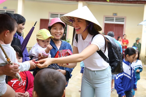 Á hậu Lệ Hằng và Thiên Lý cũng hết mình với chuyến đi. Có trải qua những hoạt động thực tế đầy ý nghĩa này mới thấm thía được sự khó khăn của người dân nơi đây. Được biết, đoàn đã trao hơn 200 phần quà tiền mặt cho bà con cùng hơn 400 phần quà cho các em nhỏ.