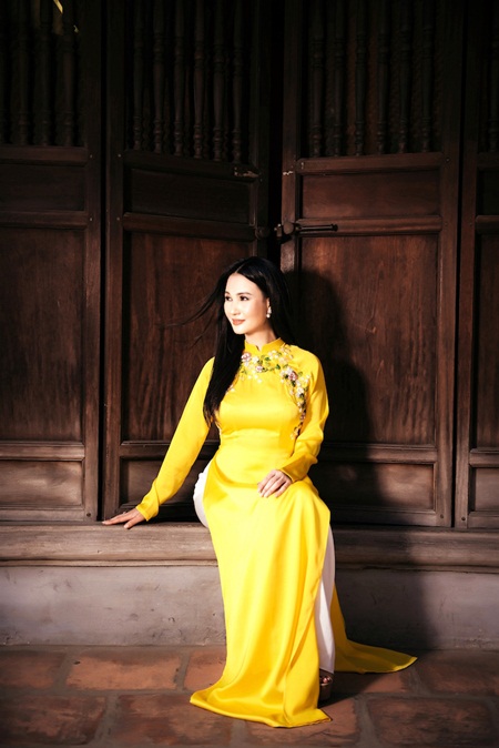 Tuy nhiên, chị thường chọn những thiết kế áo dài tôn vẻ sang trọng, quý phái để phù hợp với độ tuổi của mình.