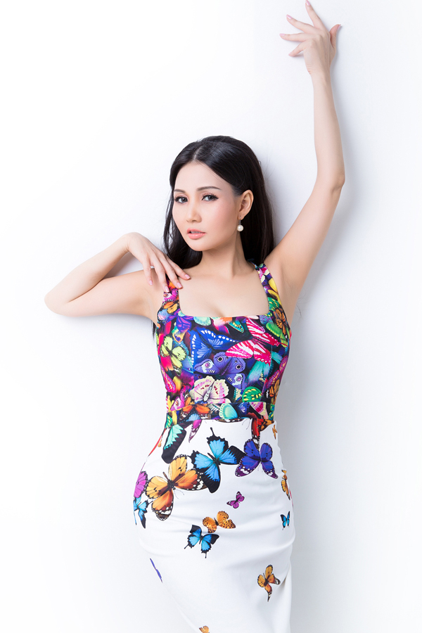 Những cánh bướm rực rỡ trên các thiết kế giúp hình ảnh của Hoa hậu bay bổng, nhẹ nhàng, thanh thoát như nàng tiên kiều diễm.