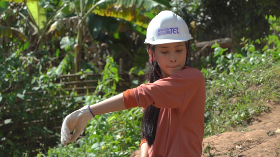 Trong lúc thực hiện dự án nhân ái của mình, Hoa hậu Tiểu Vy đã lăn xả tự tay dọn cỏ, đẩy xe, đào đất cùng bộ đội biên phòng Cồn Roàng đào giếng cho bà con. |