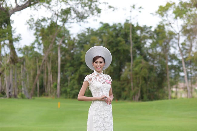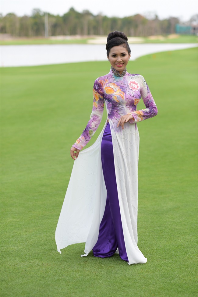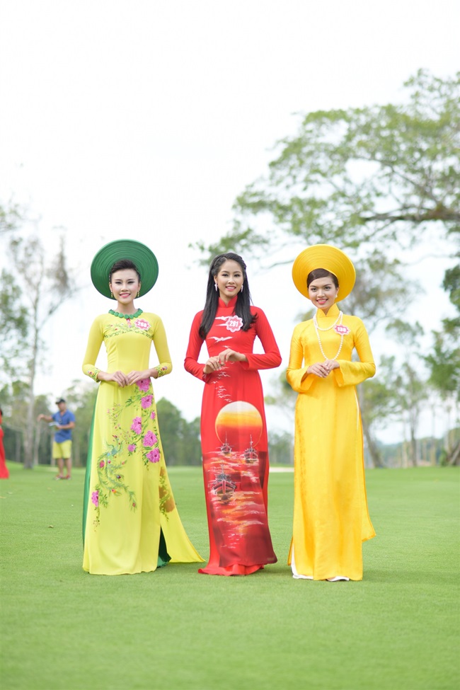 Trong buổi chiều cùng ngày, các thí sinh di chuyển tới sân golf 27 lỗ đạt chuẩn quốc tế đầu tiên trên đảo tại Việt Nam để ghi hình với trang phục áo dài tự chọn. Không gian xanh mướt, rộng bao la của Vinpearl Golf rộng trên 100ha này trở thành bối cảnh ấn tượng để các thí sinh khoe sắc với những tà áo dài duyên dáng rực rỡ sắc màu.