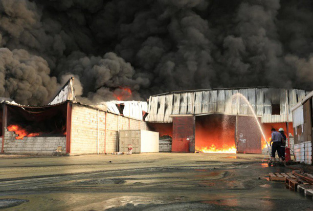 Hình ảnh ghi nhận được cho thấy lửa lớn kèm theo đám khói đen cuồn cuộn lên không trung và nhân viên cứu hỏa đang cố gắng dập tắt ngọn lửa.