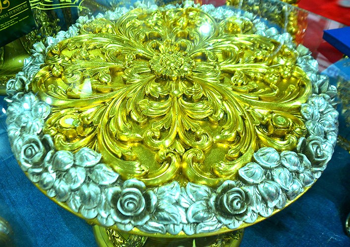 Mới đây, một bộ bàn ăn dát vàng theo phong cách châu Âu cổ điển được một chủ sản xuất đồ gỗ bán với giá 450 triệu đồng.